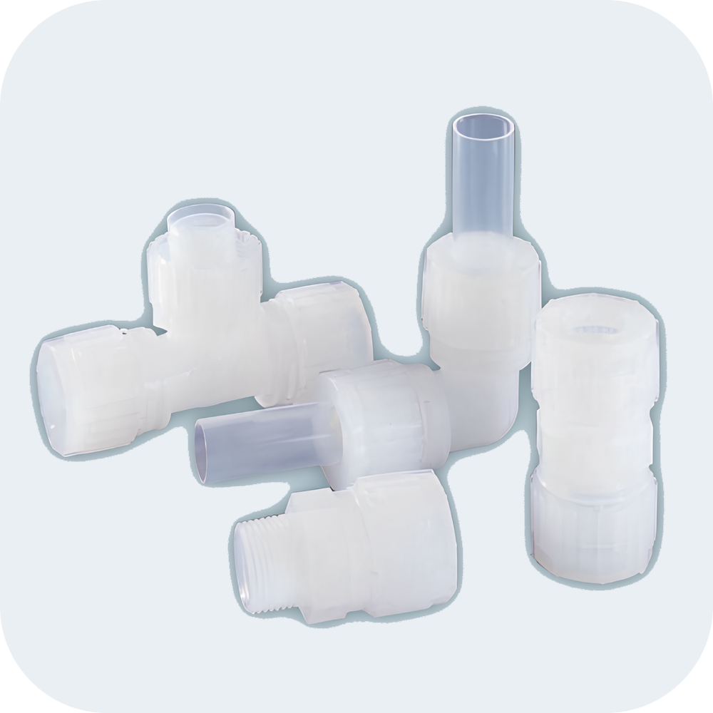 我們專注于高科技市場,特別是半導體、液晶和醫(yī)療領(lǐng)域。 主要提供耐化學腐蝕、耐熱和清潔的氟樹脂接頭、管件和泵。由于氟樹脂產(chǎn)品不受各種化學溶液的影響并且密封性強,被用于半導體晶圓清洗設備以及其他化學藥劑的運輸及循環(huán)設備。